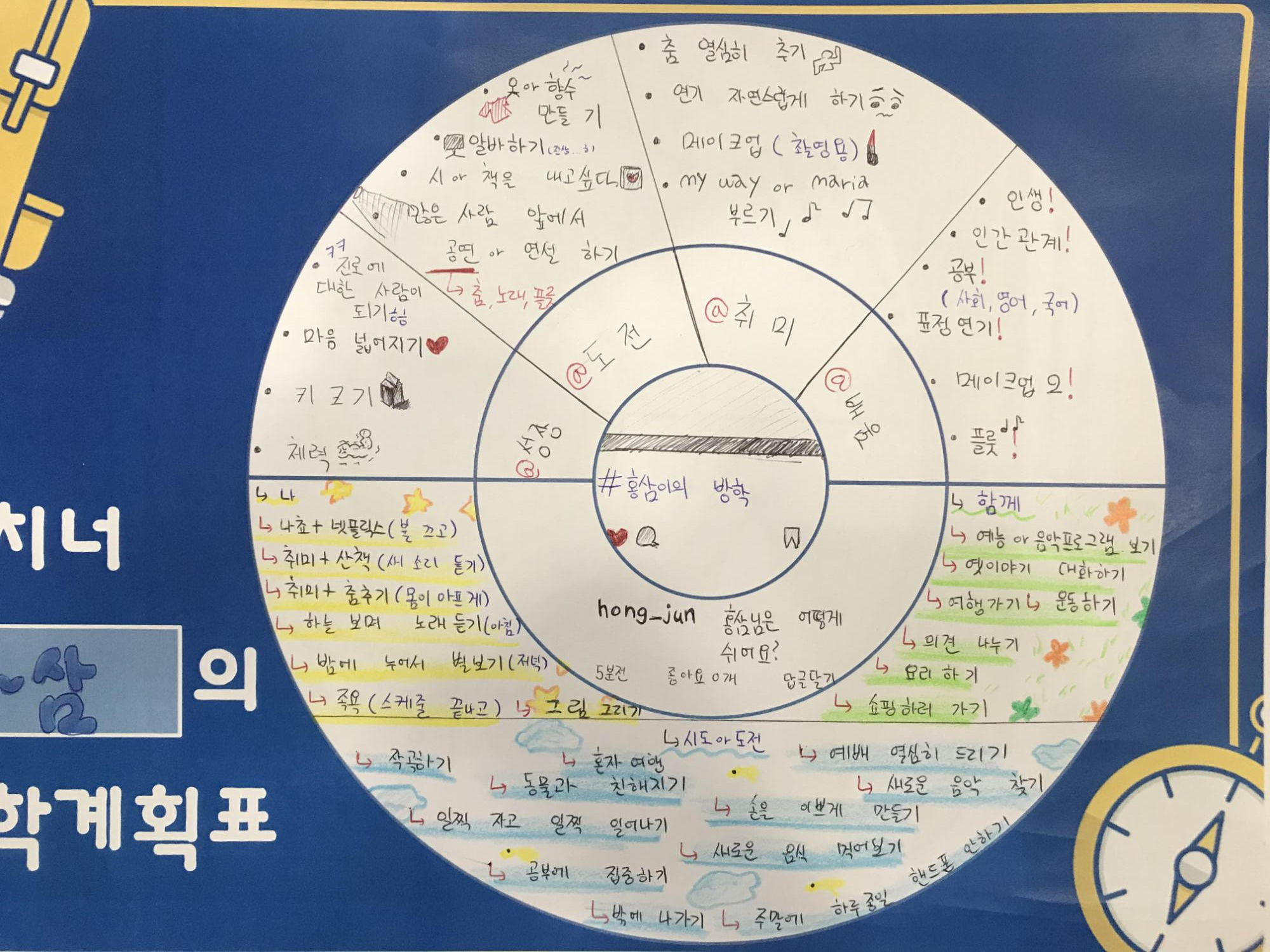 갭이어-친구-우정으로 이어지는 키워드 다음에 꽃치너들 이름을 하나하나 적은 마인드맵이 너무 감동적이었어요~!