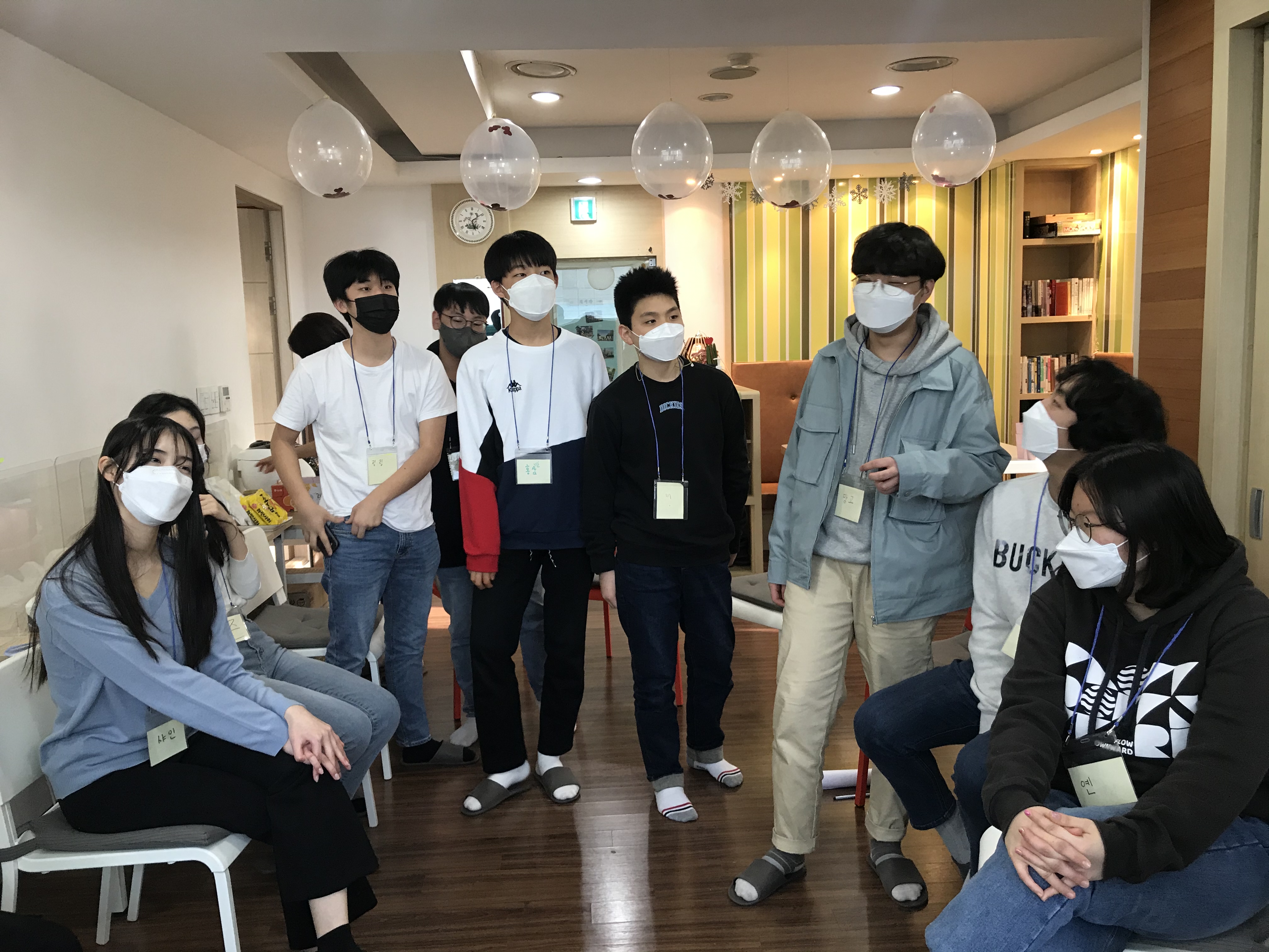 써클로 둘러 앉아 처음으로 자신의 이야기를 들려주고 나서는 즐거운 게임을 했습니다. 몸을 움직이는 게임을 하면서 서로 부딪히기도 하고 팀게임을 하면서 머리를 맞대다 보니 점점 우리 마음의 거리가 좁혀지는 것을 느낄 수 있었습니다. 제가 제일 기억에 남는 게임은 팀원들이 돌아가면서 짧은 시간 안에 영화 제목을 그림으로 표현하면 한 명이 그 제목을 맞추는 게임이었는데요, 천재적인 그림 실력과 맞추기 실력을 엿볼 수 있는 시간이었습니다!