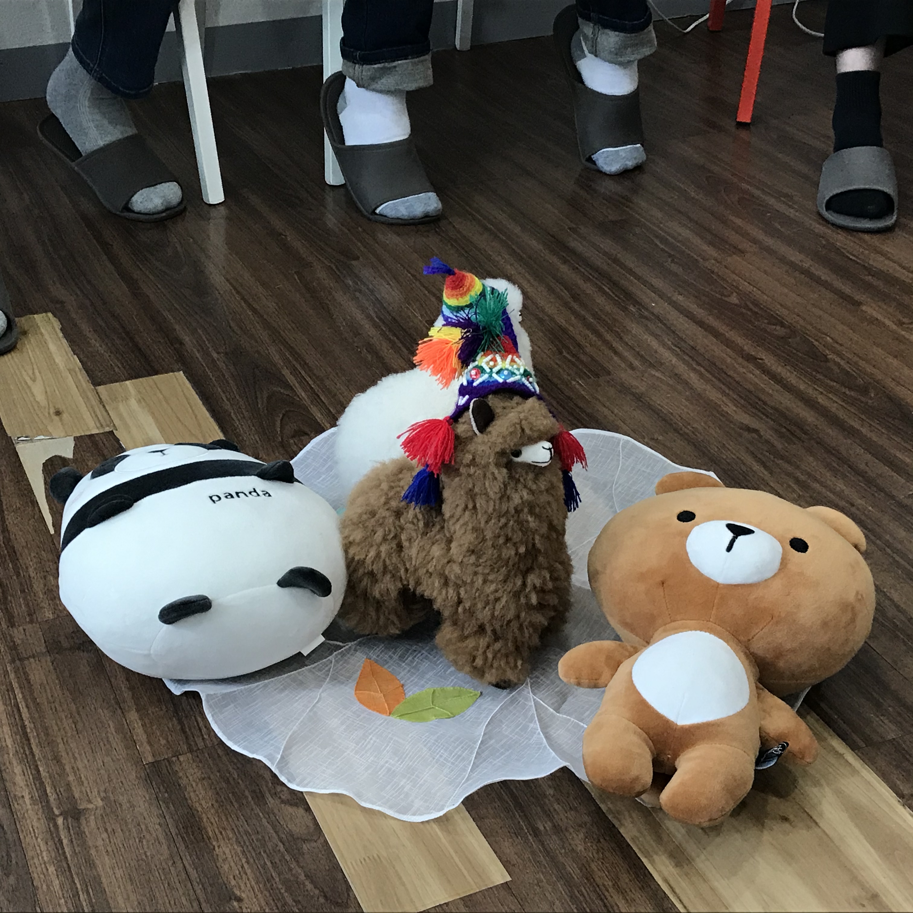 첫날 오전에는 써클타임 시간을 가졌어요. 써클타임은 꽃친에서 게임을 하거나 대화를 나눌 때 자주 활용하는 프로그램이에요. 동그랗게 둘러 앉아 서로의 이야기에 귀를 기울이는 시간이지요. 원으로 둘러 앉는 것의 의미는 우리 모두가 중심으로부터 같은 거리에 있기 때문에 모든 사람, 모든 이야기는 동등하게 중요하다는 것과 끊어진 곳 없이 둥그렇게 연결되어 있다는 것이에요. 평등한 관계, 모두가 존중받는 공동체, 나의 의견과 감정이 안전하게 경청되는 공간을 중요하게 생각하는 꽃친과 써클타임은 아주 잘 어울리지 않나요?