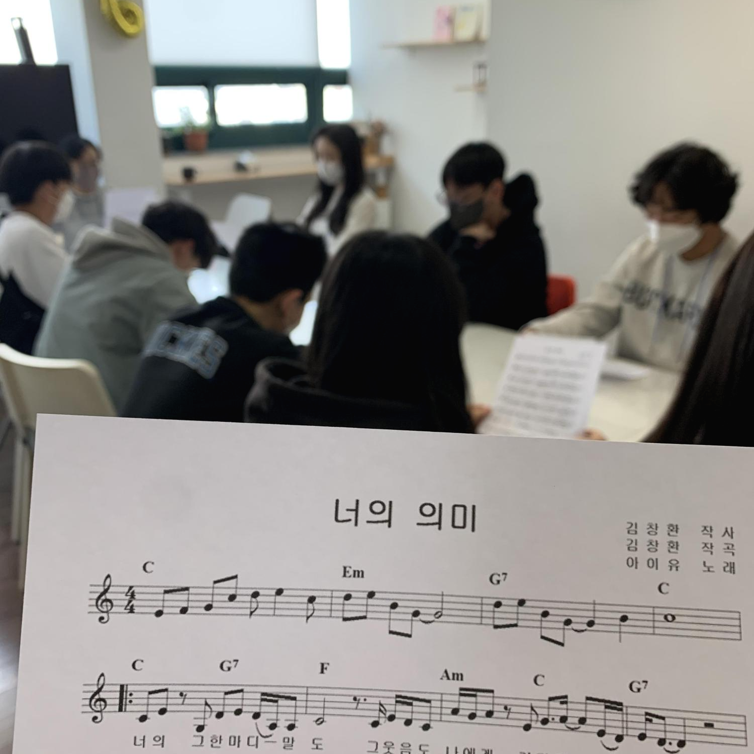 밥 먹고 와서는 함께 노래하는 시간을 잠시 가졌어요. 오늘의 싱어롱 선곡은 '너의 의미'와 '쉼이 필요해'입니다. 노래는 자고로 함께 할 때 그 의미가 더 살아나는 법! 앞으로 1년 동안 다양한 노래를 함께 불러볼 수 있길 바래요~