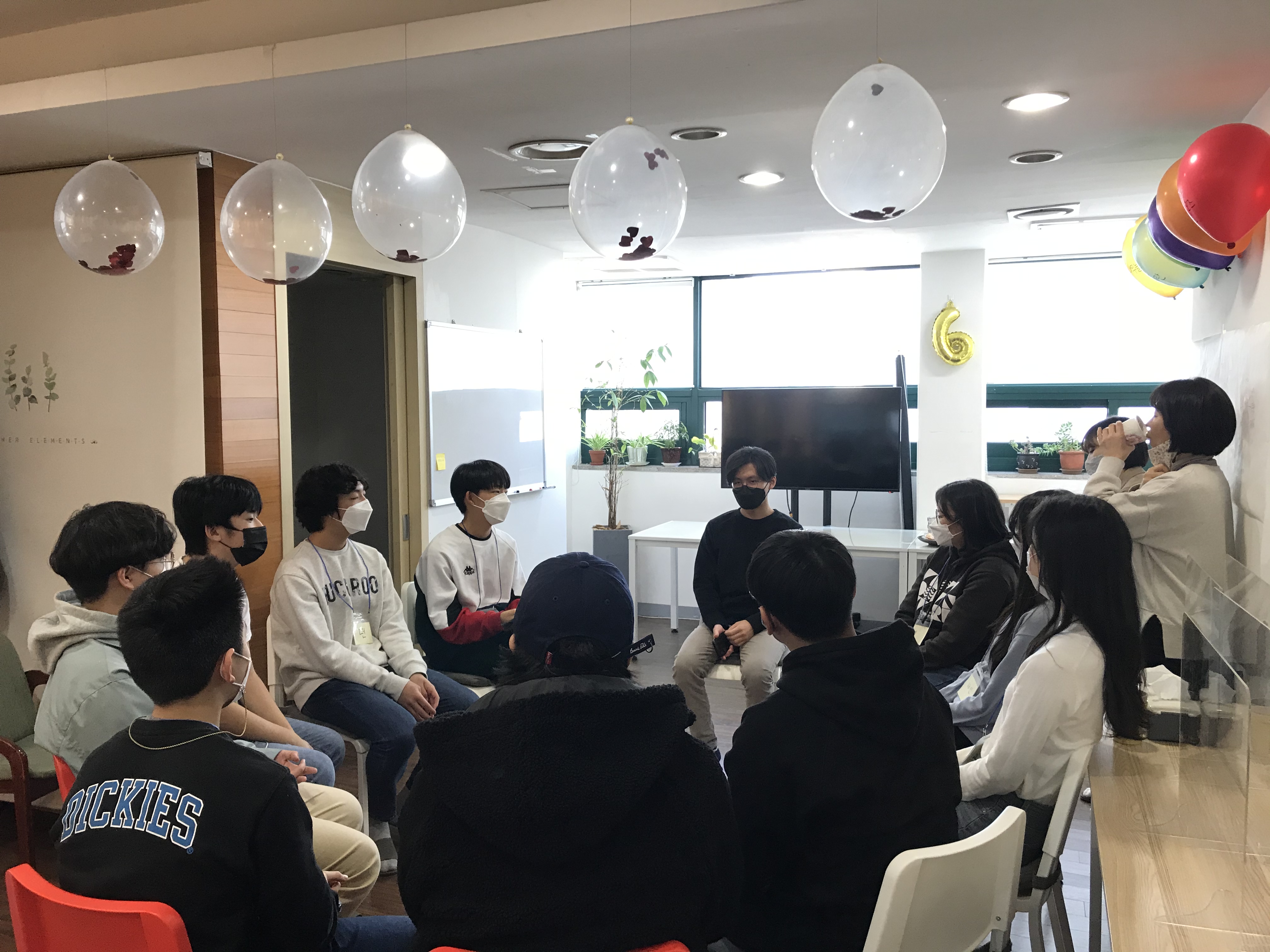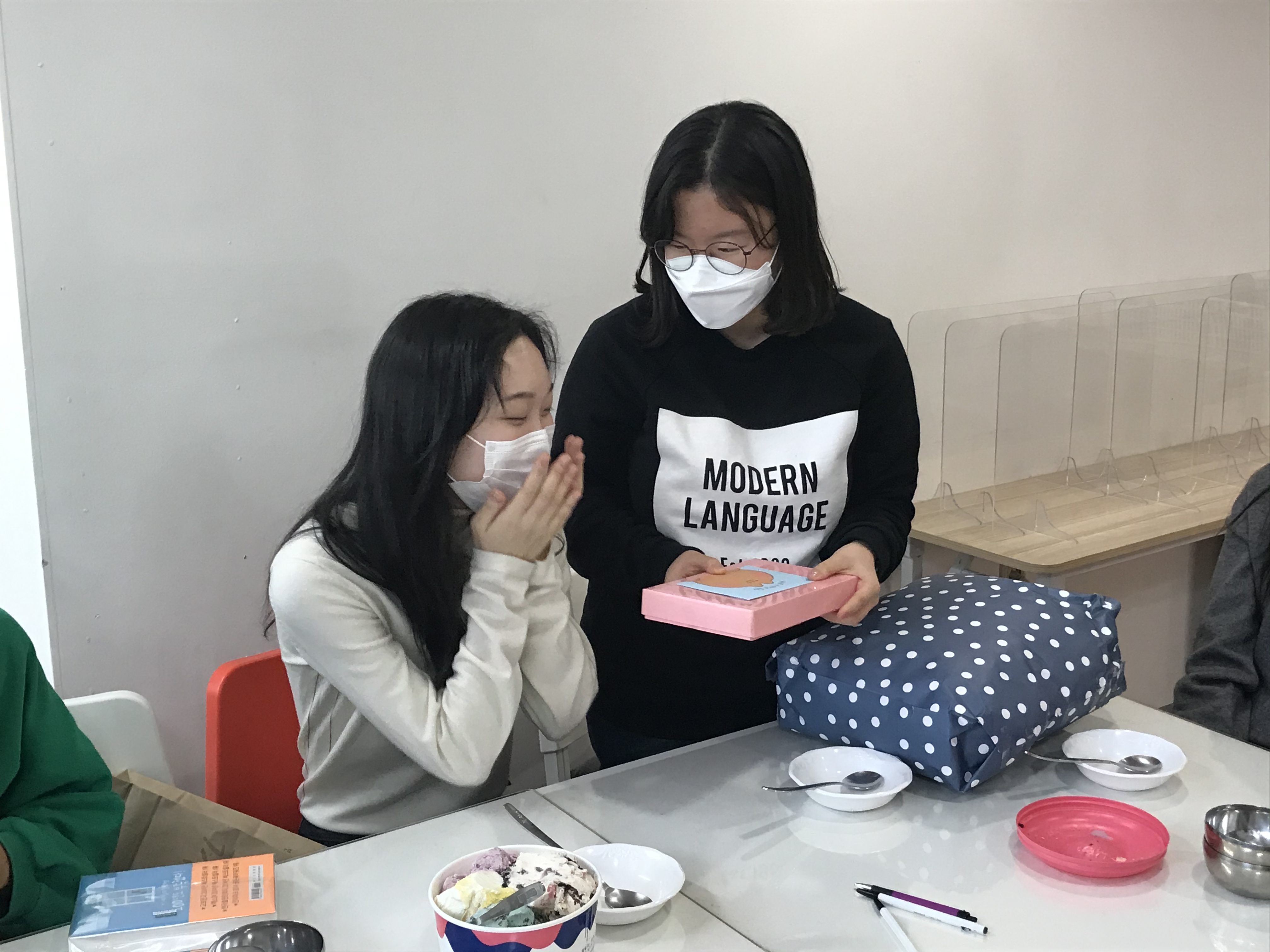 그리고 다음으로는! 3기와 4기 선배 중 한 명씩이 대표로 방문해주어서 선배와의 대화 미니 버전을 진행했습니다. 6기의 절반이 민초단이라는 소문을 듣고 두 손 가득 배스킨라빈스를 들고 오는 센스! 몇 년 전에는 이 자리에서 두근거리는 마음으로 방학의 시작을 맞이했던 꽃치너들이 어느 덧 선배가 되어 방학생활 꿀팁을 전해주었답니다. 6기 친구들은 또 몇 년 뒤에 7기, 8기들을 만나는 상상을 했겠지요?