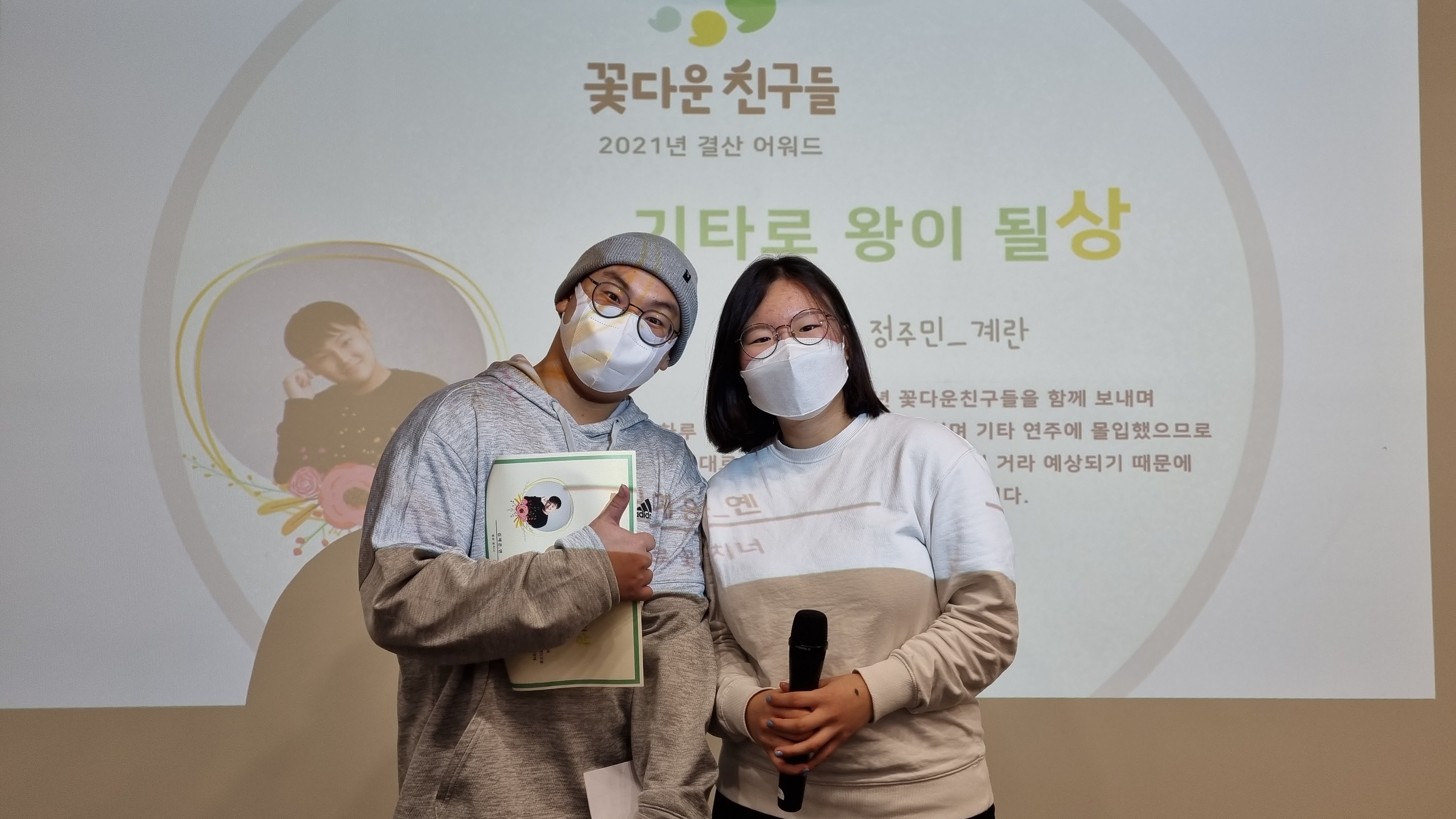 매년 빠질 수 없는 꽃친 안녕식만의 특별한 시간이죠. 연예대상 부럽지 않은(!) 꽃친어워드 시간입니다. 꽃치너들이 서로 알고 있는 고유한 모습을 찾아 칭찬하고 상을 만들었어요. 친구를 위해 만든 상장인 만큼 꽃치너들끼리 릴레이로 시상했습니다.